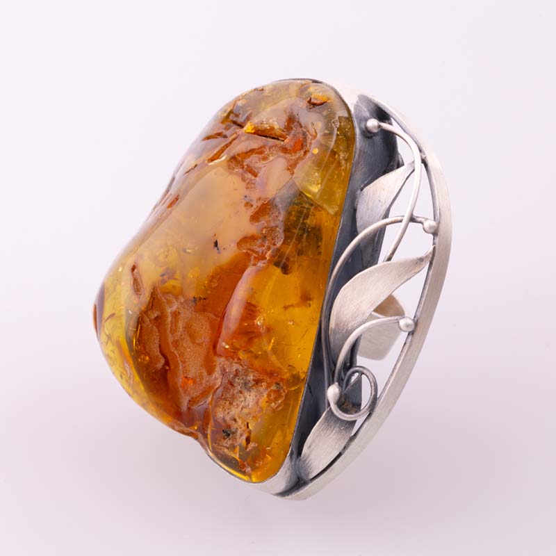 Ogromny artystyczny pierścionek z bursztynem bałtyckim – srebro próby 925
