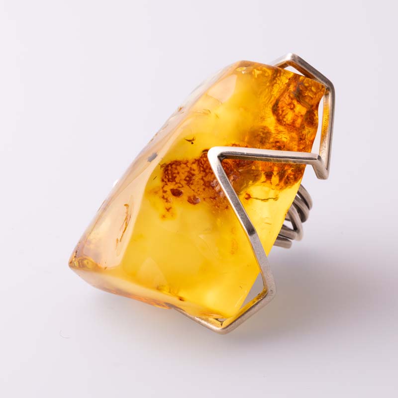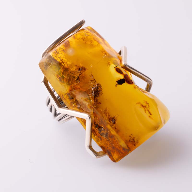 Nowoczesny pierścionek ze srebra próby 925 z dużym naturalnym bursztynem